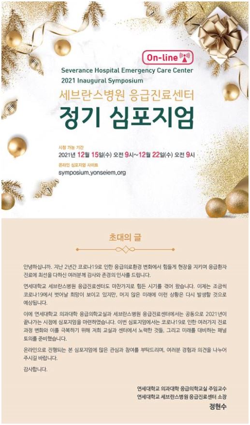 2021 세브란스병원 응급진료센터 정기 심포지엄(온라인)에 여러분을 초대합니다.